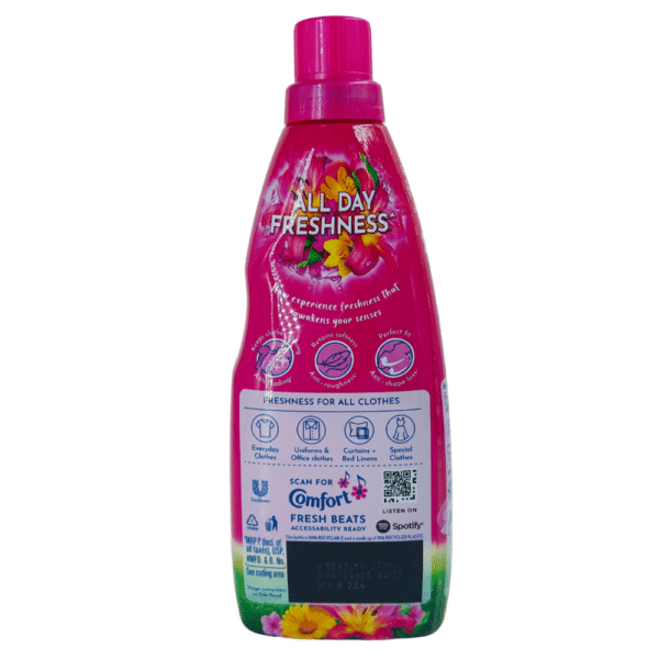 Comfort Pink Lily 860ml is a premium fabric conditioner that keeps your clothes soft, smooth, and beautifully fragrant. Its long-lasting Pink Lily scent adds freshness to every wash. Gentle on all fabrics, it reduces wrinkles and makes ironing easier — giving your clothes a new-like shine and feel.