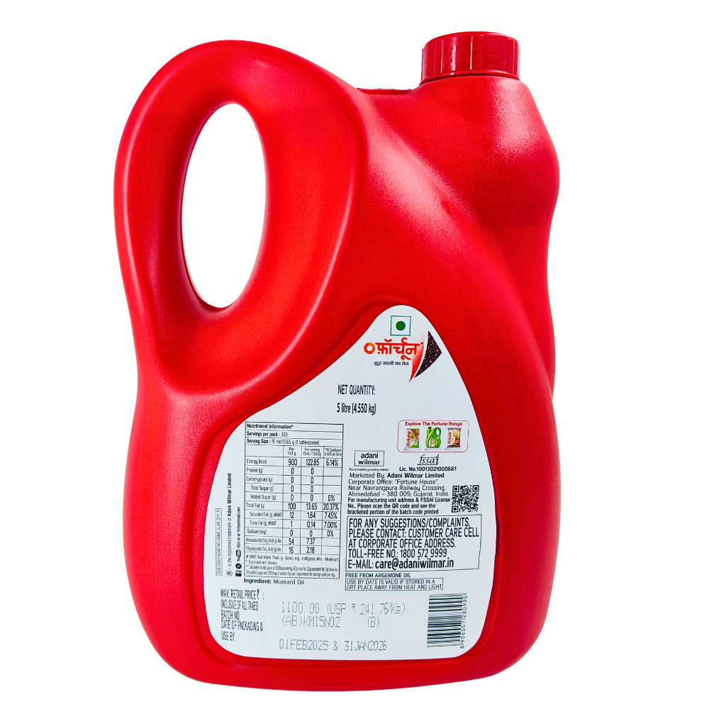 Fortune Kachi Ghani Mustard Oil 5L is made using cold-press extraction for maximum flavor and nutrition. Perfect for traditional Indian cooking, it enhances aroma and taste while offering health benefits through omega-3 and natural antioxidants.