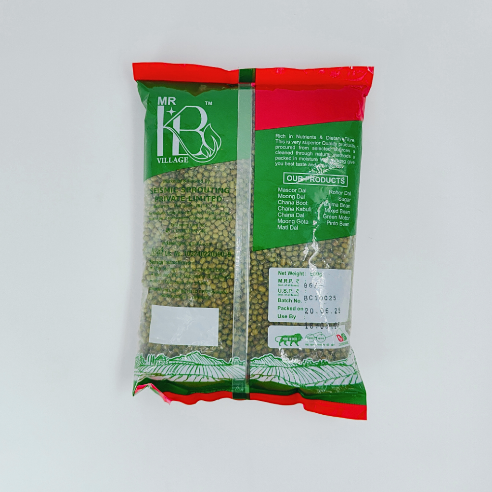 MR KB Moong Gota 500GM – High-quality split green gram (moong) with husk removed, perfect for dals, salads, and snacks. Nutritious, protein-rich, and freshly packed to ensure natural taste, texture, and long-lasting freshness.