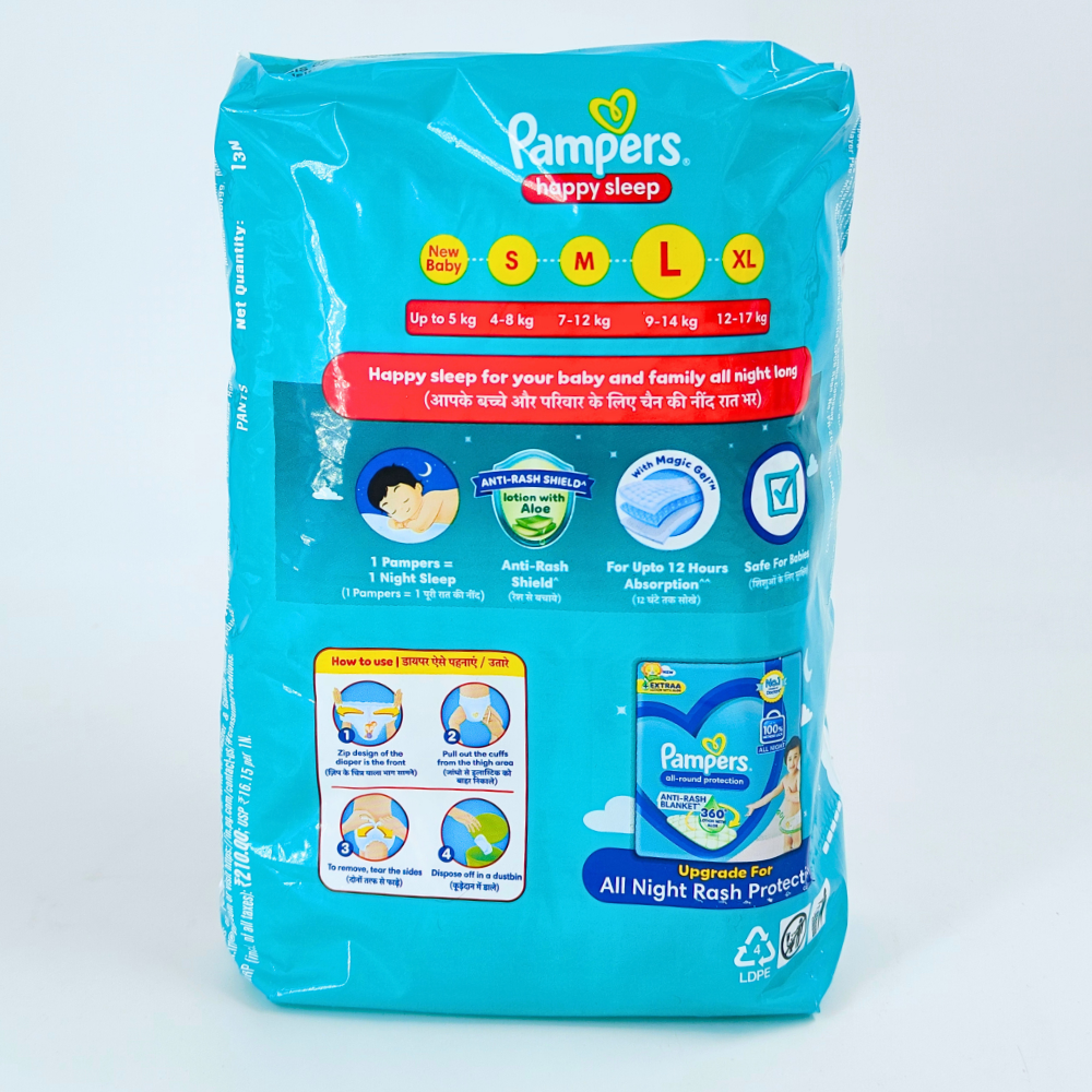 Pampers L13 diapers provide long-lasting dryness with their superior absorbent core. Perfect for active babies, they keep skin fresh, comfortable, and healthy with every wear.