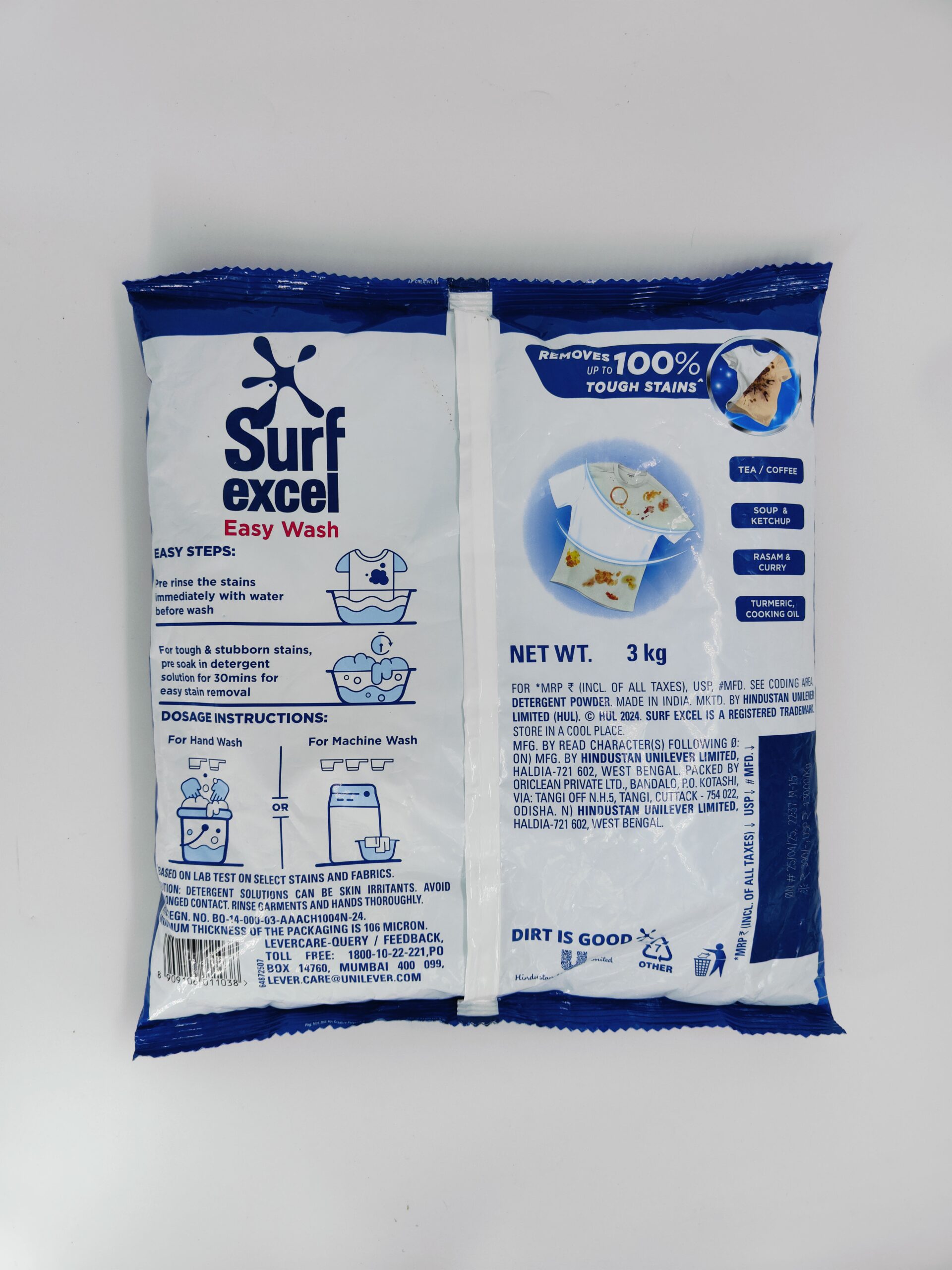 Surf Excel Powder 500GM – Effective detergent powder that removes tough stains with ease. Suitable for both hand wash and machine wash, it keeps clothes bright, fresh, and clean with a pleasant, long-lasting fragrance.